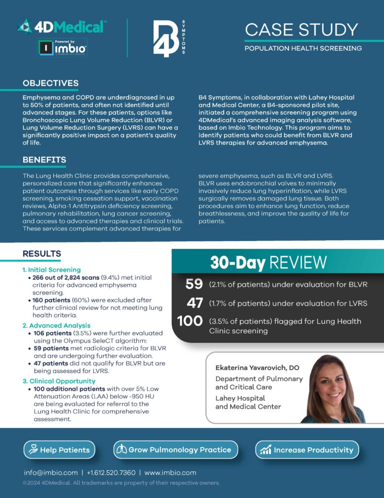 Dr. Ekaterina Yavarovich shares the initial results from her institution’s B4 Symptoms-sponsored pilot study, that leveraged AI imaging, NLP technology, and nurse navigator support to identify and engage at-risk patients with emphysema.